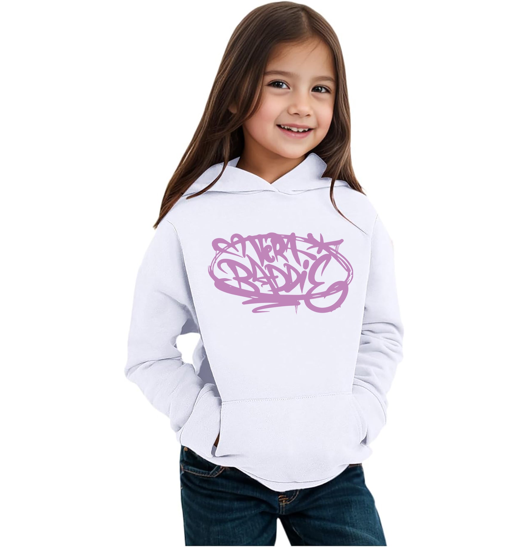 Felpa invernale in misto cotone poliestere, colore bianco o nero di Anna Peppe "Vera Baddie". Modello Unisex per bambino, bambina e adulti. Felpa con Cappuccio o modello Girocollo. Consulta la tabella taglie e scegli quella che fa per te.