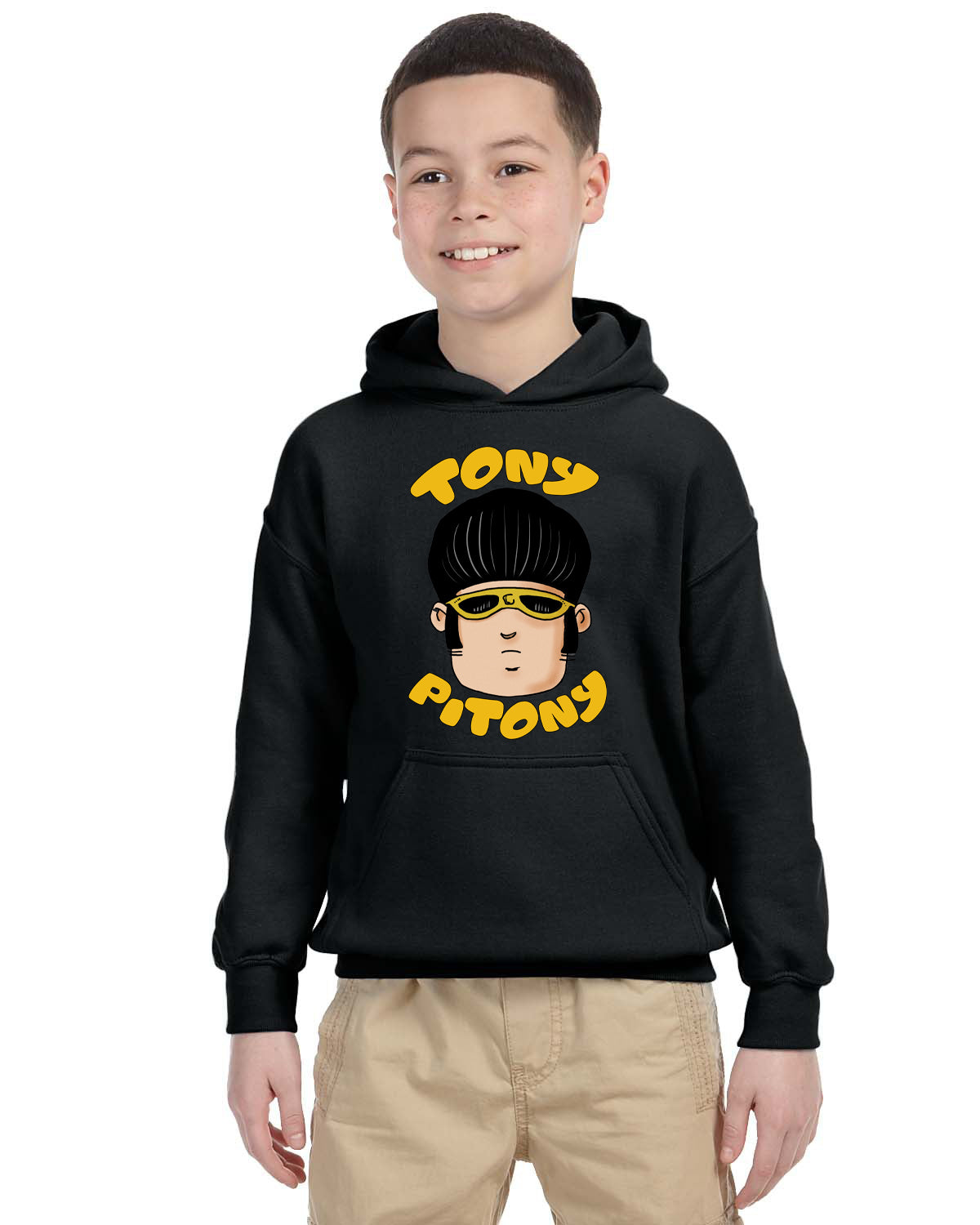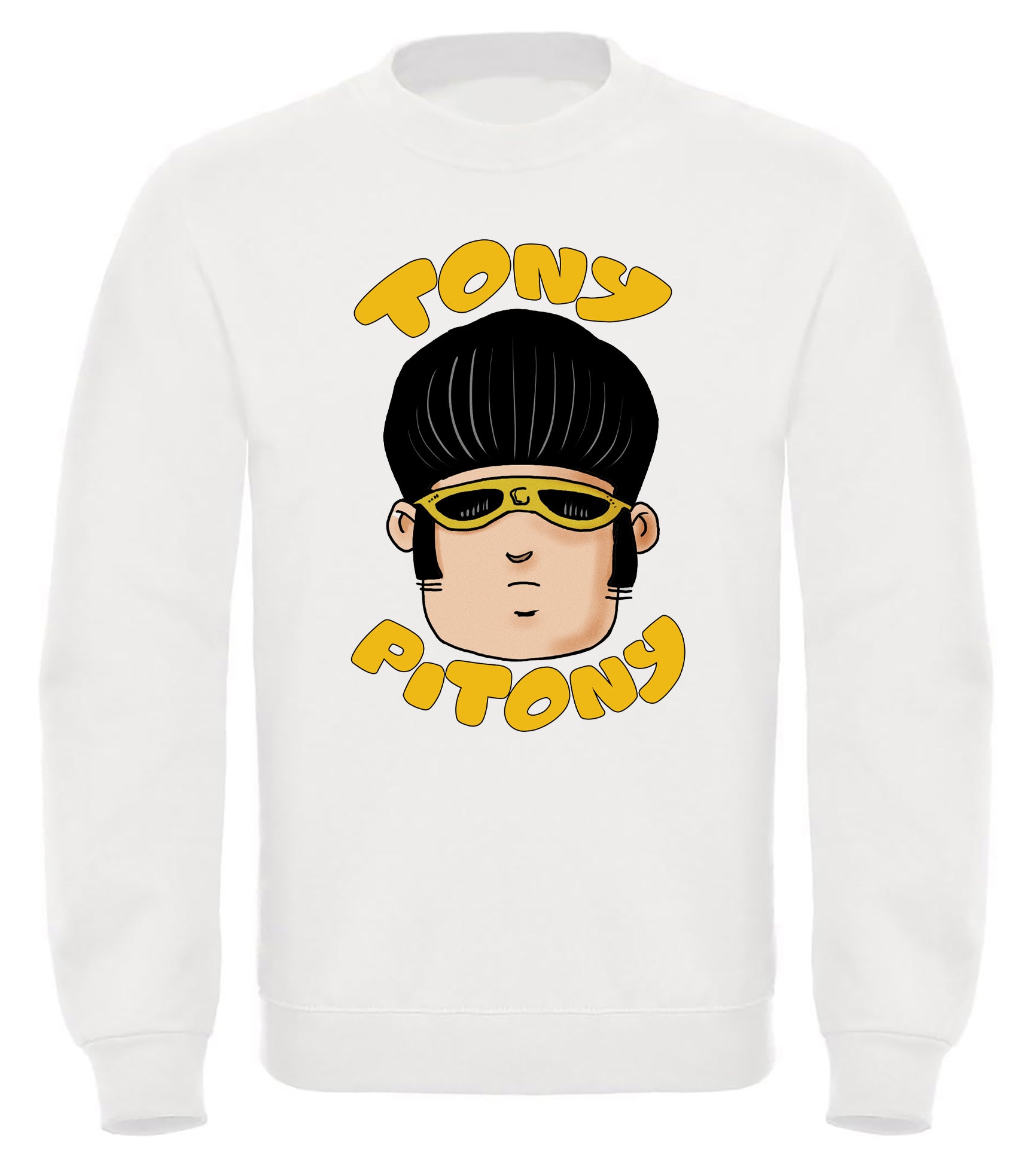 Felpa di TonyPitony. Felpa invernale in misto cotone poliestere, colore bianco o nero con stampa logo fronte e retro. Modello Unisex per bambino, bambina e adulti. Felpa con Cappuccio o modello Girocollo. Consulta la tabella taglie e scegli quella che fa per te.