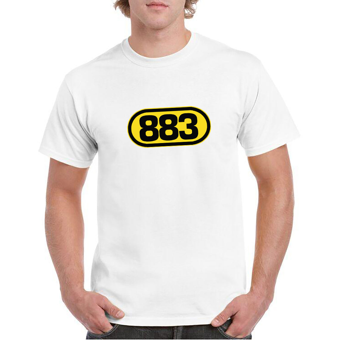 Maglietta stampata in cotone 100%, colore bianco o nero degli 883. Taglie bambini, ragazzi e adulti. Consulta la tabella taglie e scegli quella che fa per te.