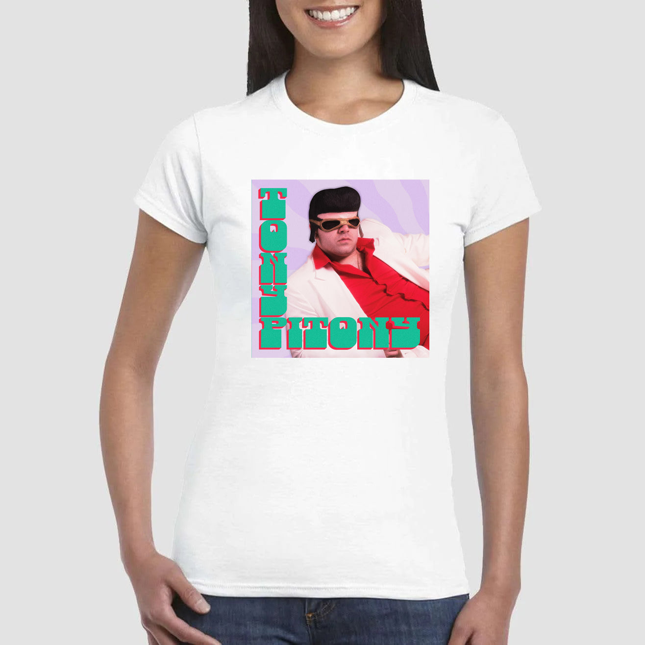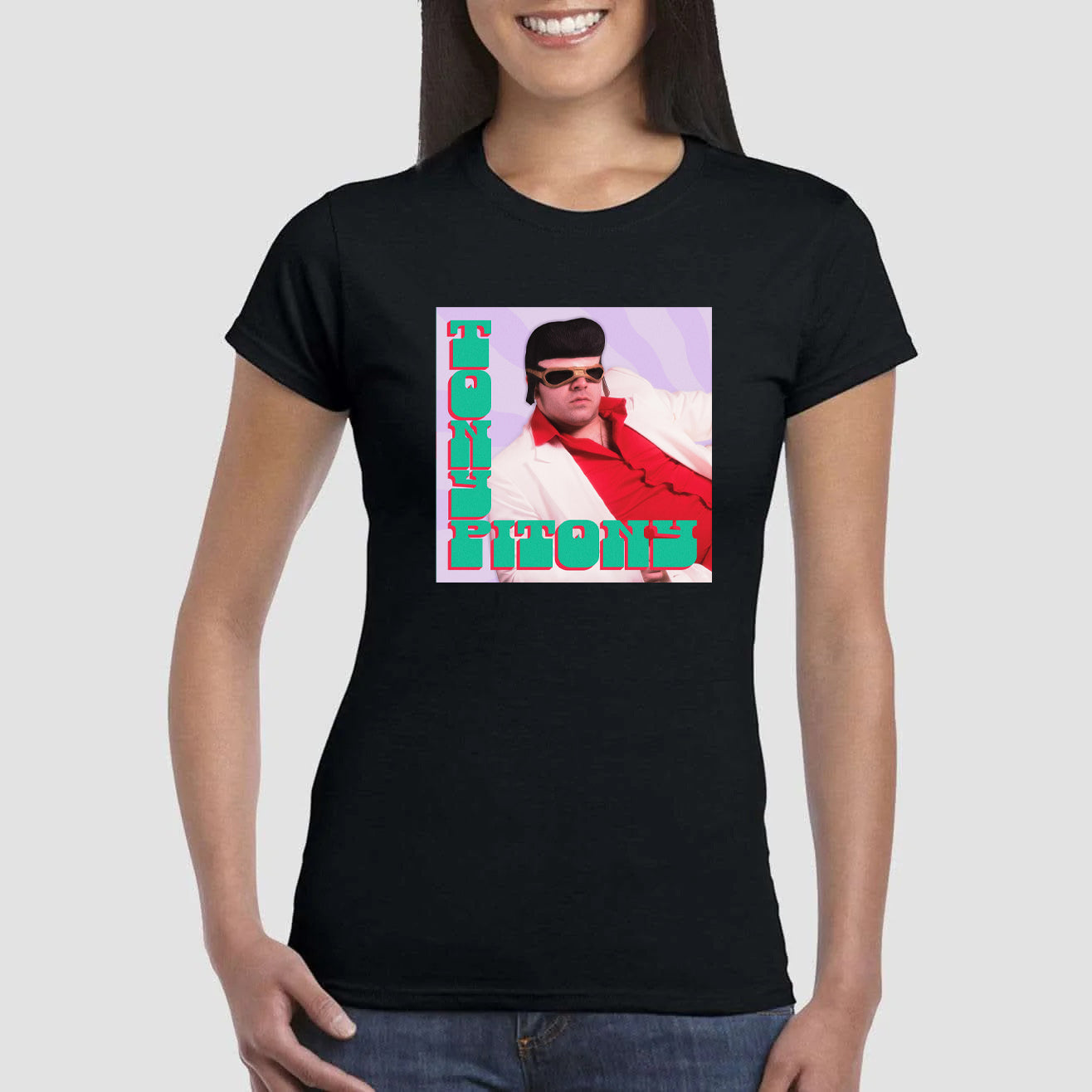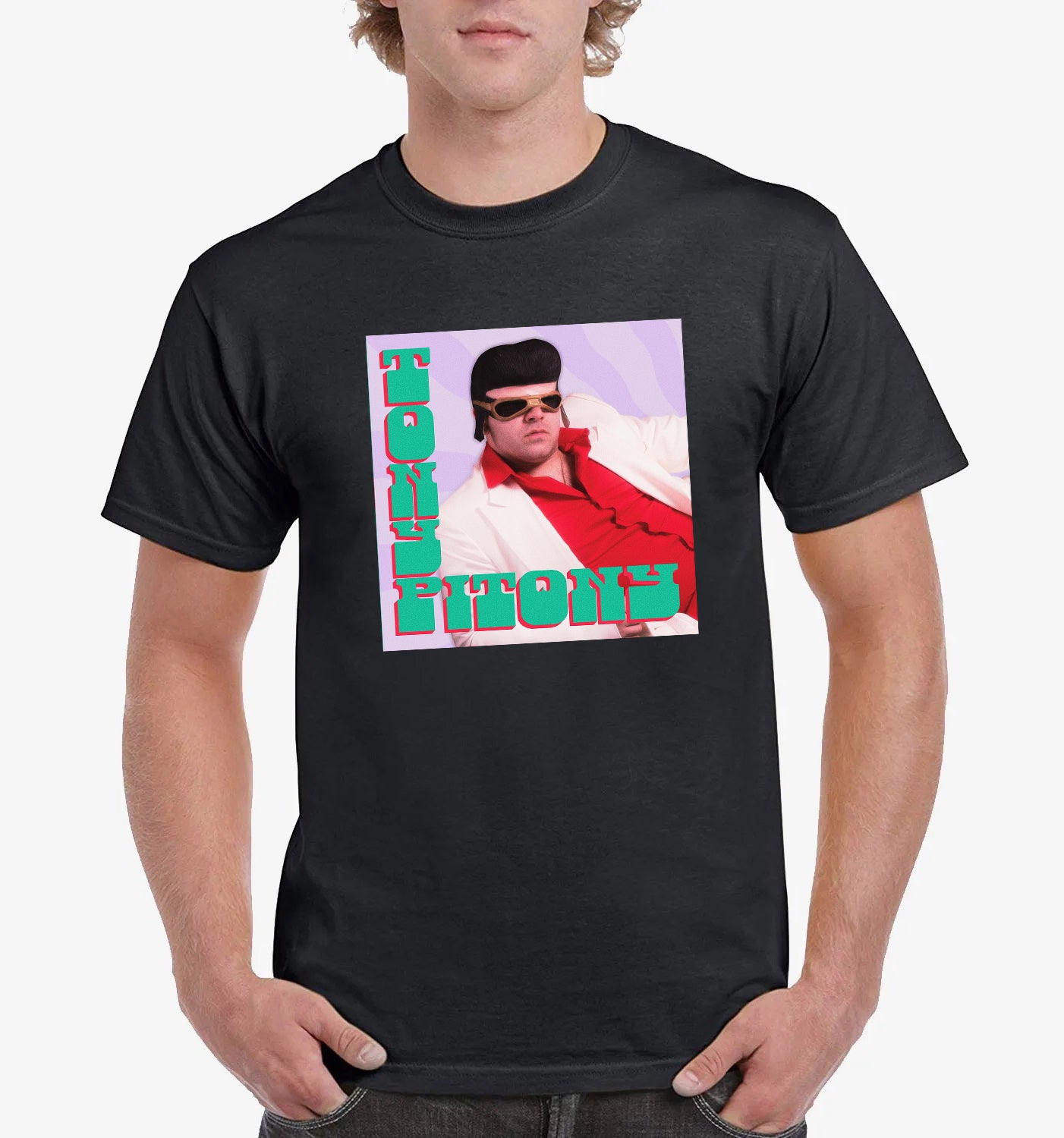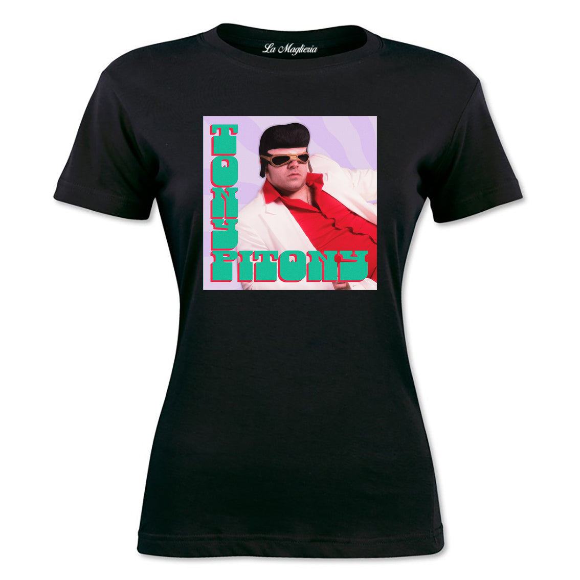 Maglietta stampata in cotone 100%, colore bianco o nero del mitico TONY PITONY. Taglie uomo donna, bambini, ragazzi e adulti. Consulta la tabella taglie e scegli quella che fa per te.